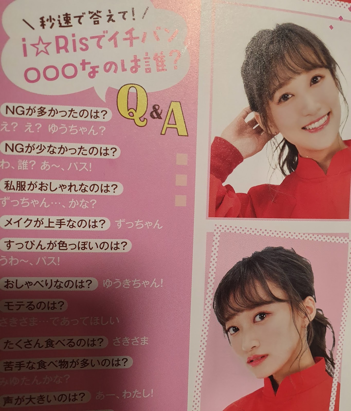 시부야 아즈키: 나뿐만이 아니라, 최초에는 모두 고전하고 있었습니다. 소피는 메이킹드라마 부분에서 큰 소리를 못내는 부분이라든가, 시온은 사자숙어의 말하는 방법이라든가, 레오나는 귀여움을 드러내는 방식이라든가. 각자 각자가 공부해서, 자신의 캐릭터를 키워내서, 자기자신도 성장해서, 그 결과, (자신과 캐릭터 사이에) 무척이나 좋은 관계를 쌓았다고 하는 것이네요. i☆Ris 는 정말 좋은 작품에, 베스트 타이밍에 만났습니다.